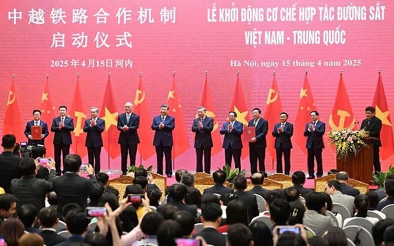 Ngày 15/4 Tô Lâm và Phạm Minh Chính đã dự lễ khởi động cơ chế hợp tác đường sắt Việt Nam – Trung Quốc. Trước đó, ngày 14/4, Trung Cộng và CSVN đã nhất trí tăng cường hợp tác thực chất trên các lĩnh vực, thành lập Ủy ban hợp tác đường sắt giữa hai Chính phủ để thúc đẩy hợp tác đường sắt.