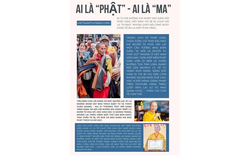 Ai đi tu mà không gia nhập vào Giáo hội Phật giáo Việt Nam thì sẽ bị chụp mũ là “tà đạo”, nhưng Giáo hội càng ngày càng tỏ ra là một ổ ma tăng…