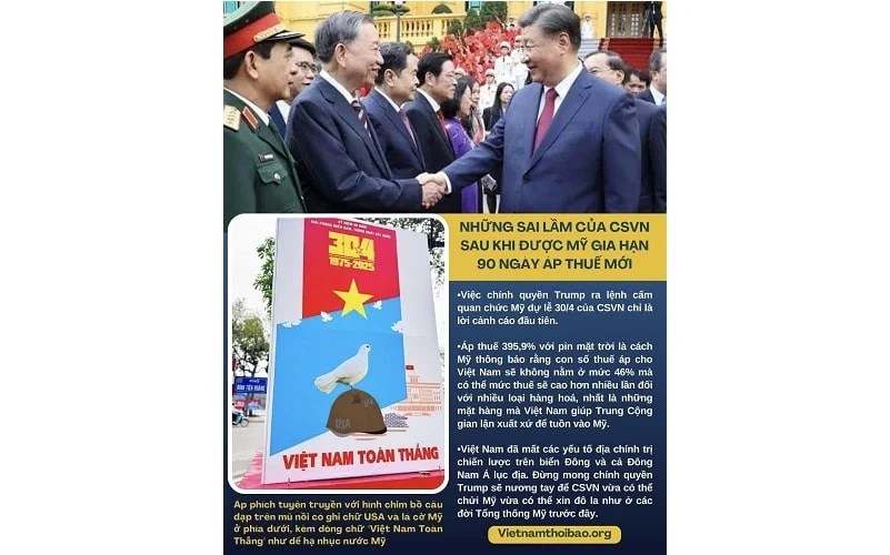 Khi được chính quyền Tổng thống Donald Trump gia hạn 90 ngày áp mức thuế mới để chờ thương lượng, thay vì tìm cách lấy lòng người Mỹ, CSVN lại coi đó là một thắng lợi bước đầu trong đàm phán. Chính vì đánh giá sai tình hình, nên các quan chức CSVN đã có một loạt hoạt động sai lầm trong mấy tuần qua.