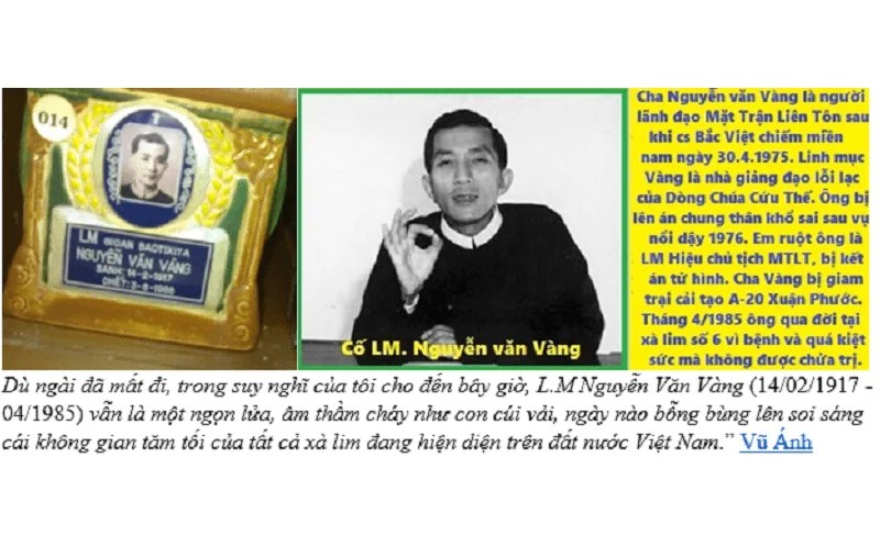 Có nhiều vị tu sĩ chân chính . Trong số đó, linh mục Nguyễn Văn Vàng đã hy sinh để cứu bạn tù và thắp lên niềm hy vọng bằng đức tin kiên cường trong lao tù khổ sai của Cộng Sản.