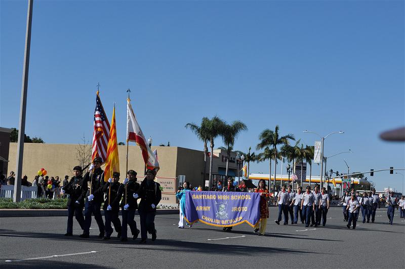 Đoàn diễn hành của Trường High School Army trong Diễn Hành Tết 2024 trên Đường Bolsa, thành phố Westminster, California.(www.vietbao.com)