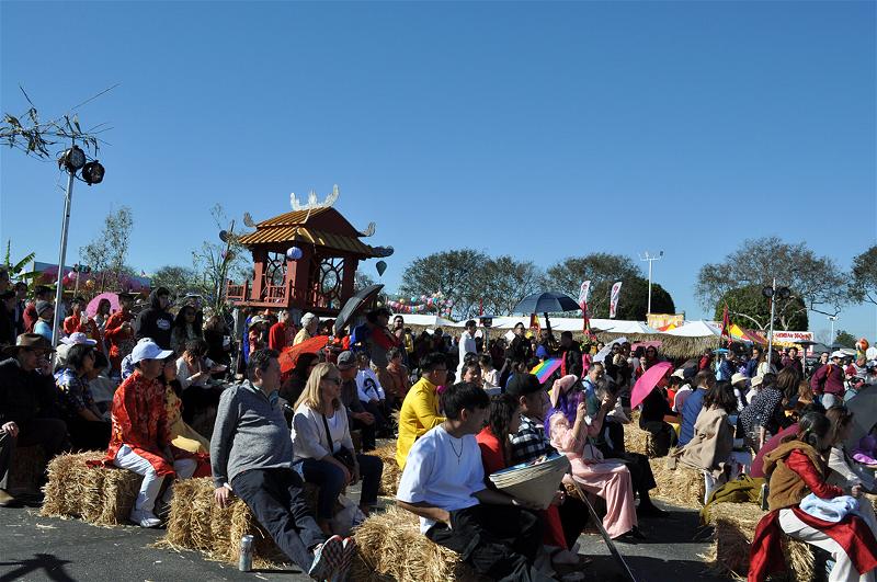 Quang cảnh đồng hương tham dự văn nghệ tại Làng Việt Nam trong Hội Chợ Tết 2024 do Tổng Hội Sinh Viên Việt Nam Miền Nam California tổ chức tại OC Fair & Event Center, Miền Nam California.(www.vietbao.com)