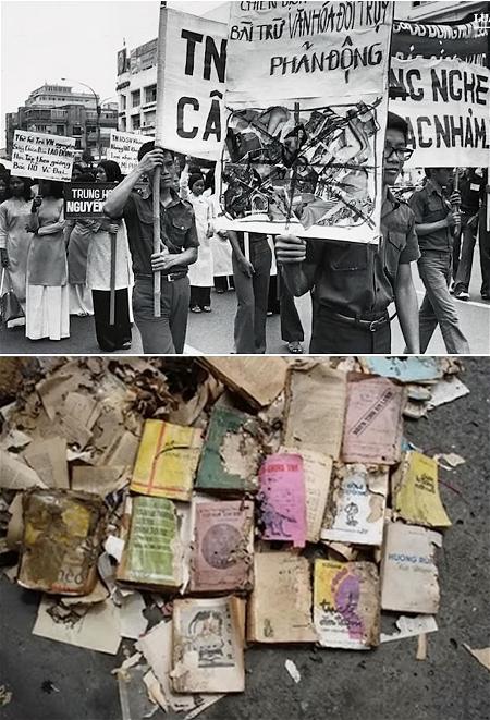 Một trong những công việc đầu tiên của chính quyền là hủy tất cả các ấn phẩm (sách, báo) của bộ Văn hóa ngụy,kể cả các bản dịch tác phẩm của Lê Quí Đôn,thơ Cao Bá Quát,Nguyễn Du;tự điển Pháp, Hoa, Anh cũng bị đốt. Năm 1976 một ông thứ trưởng Văn hóa ở Bắc vào thấy vậy, tỏ ý tiếc.Nhưng ông thứ trưởng đó có biết rõ đường lối của chính quyền không,vì năm 1978, chính quyền Bắc chẳng những tán thành công việc hủy sách đó mà còn cho là nó chưa được triệt để, ra lệnh hủy hết các sách ở trong Nam, trừ những sách về khoa học tự nhiên, về kỹ thuật, các tự điển thôi; như vậy chẳng những tiểu thuyết, sử, địa lý, luật, kinh tế, mà cả những thơ văn của cha ông mình viết bằng chữ Hán, sau dịch ra tiếng Việt, cả những bộ Kiều, Chinh phụ ngâm… in ở trong Nam đều phải hủy hết ráo.