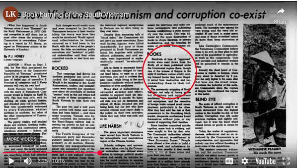 “Book burning of the South Vietnam – Miền Bắc đốt sách của Miền Nam như thế nào?” https://www.youtube.com/watch?v=_mjoRthhK_s
