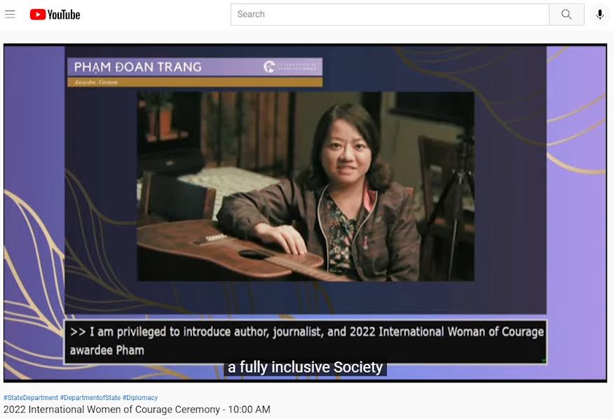 Bà Phạm Đoan Trang, năm nay 47 tuổi, bị chế độ Hà Nội bắt ngày 6 Tháng Mười 2020 ở Sài Gòn vì bị vu cho tội “Tuyên truyền chống nhà nước…” rồi cuối năm sau kết án 9 năm tù. Nhiều chính phủ gồm cả Hoa Kỳ và các tổ chức quốc tế, gồm cả Ủy ban Nhân quyền LHQ đều lên án việc chế độ Hà Nội bắt giam và bỏ tù một người chỉ vận động cho nhân quyền, tự do báo chí như bà.