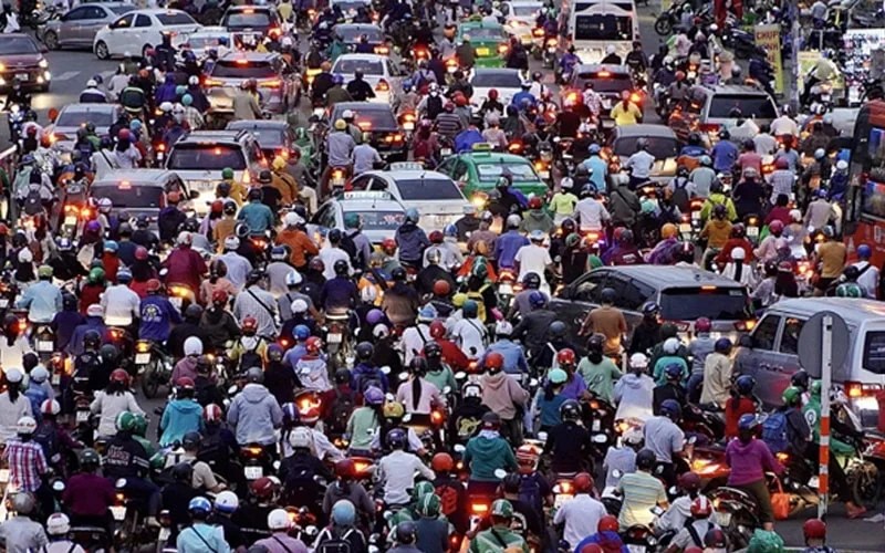 Sài Gòn có khoảng 9,8 triệu dân trên một diện tích khoảng 2095 km2, hay khoảng 4700 người mỗi km2, cũng đông đúc như Toronto. Một phần của đời sống hằng ngày là kẹt xe.