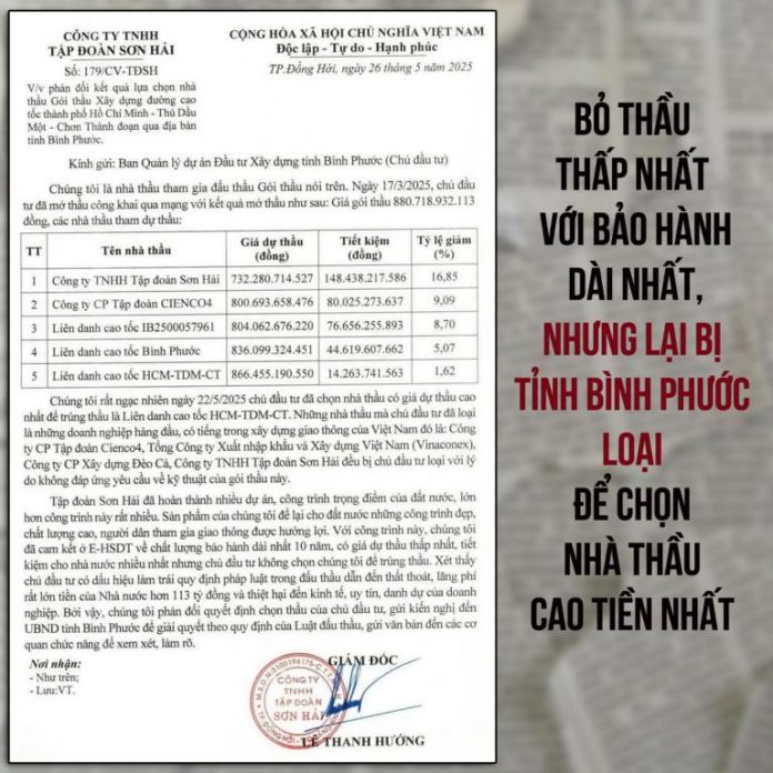 Rồi bỗng dưng công trình sử dụng vốn ngân sách xây cao tốc ở Bình Phước bỗng chọn nhà thầu có mức thầu cao hơn 150 tỉ đồng so với mức bỏ thầu khác thấp hơn.
