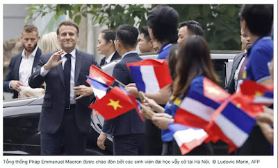 Tổng thống Pháp Emmanuel Macron hôm thứ Ba đã cảnh báo sinh viên tại Đại học Khoa học và Công nghệ Hà Nội rằng: “theo sự thúc đẩy của một siêu cường, mọi thứ đều có thể thay đổi” trong chuyến công du Đông Nam Á của ông. Ông kêu gọi họ chấp nhận “con đường thứ ba” giữa Mỹ và Trung Quốc, trước khi giới thiệu Pháp là một giải pháp thay thế đáng tin cậy.