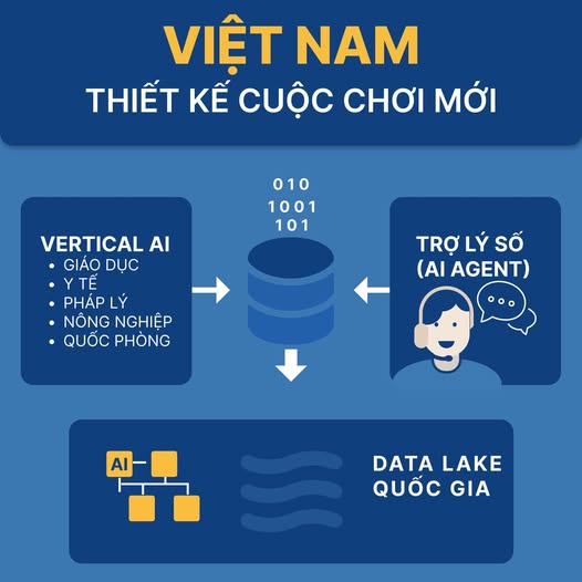 Việt Nam không cần phải đi đường của Mỹ hay Trung Quốc trong AI. Thay vào đó, hãy dẫn dắt một con đường riêng biệt, dựa trên chiều sâu bản sắc, nhu cầu địa phương, và hệ sinh thái mở – nơi mà Vertical AI là mũi đột phá, Data là tài sản quốc gia, và AI Agent là lực lượng phục vụ nhân dân.