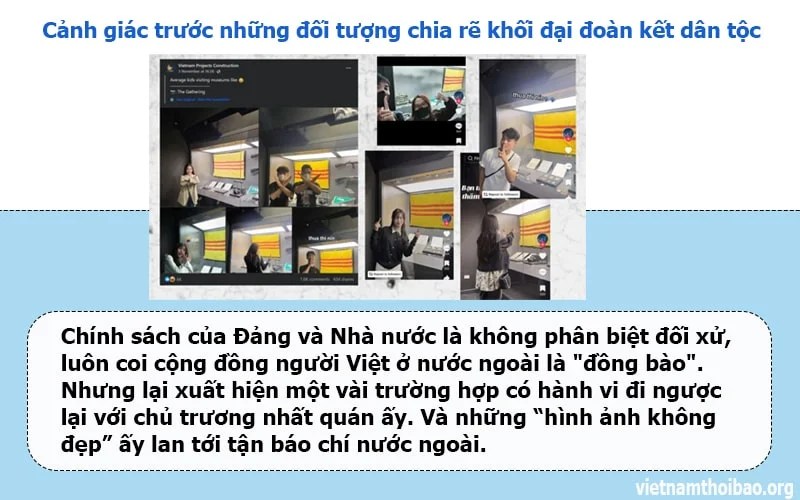 Có thể thấy, chính sách của Đảng và Nhà nước là không phân biệt đối xử, luôn coi cộng đồng người Việt ở nước ngoài là đồng bào. Nhưng lại xuất hiện một vài trường hợp có hành vi đi ngược lại với chủ trương nhất quán ấy. Và những “hình ảnh không đẹp” ấy, lan tới tận báo chí nước ngoài.