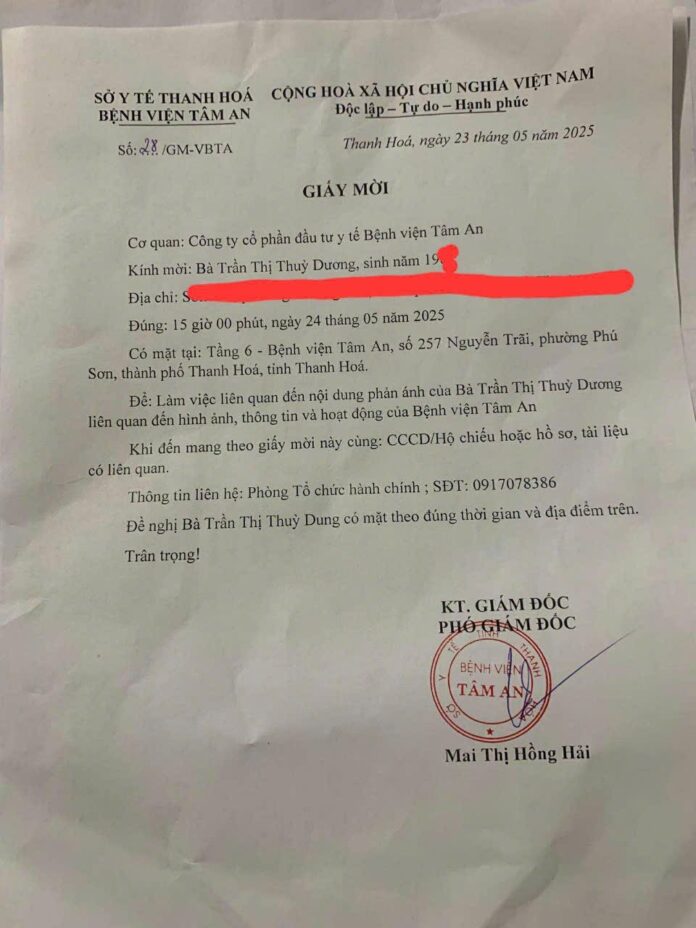 9. Sau nhiều ngày tác động bằng nhiều kênh nhiều cách để buộc cô giáo gỡ bài nhưng không thành, và thật bất ngờ, họ đã làm đơn tố cáo cô ra công an với lý do “đưa tin sai sự thật, ảnh hưởng đến uy tín, danh dự và hoạt động của bệnh viện Tâm An”!