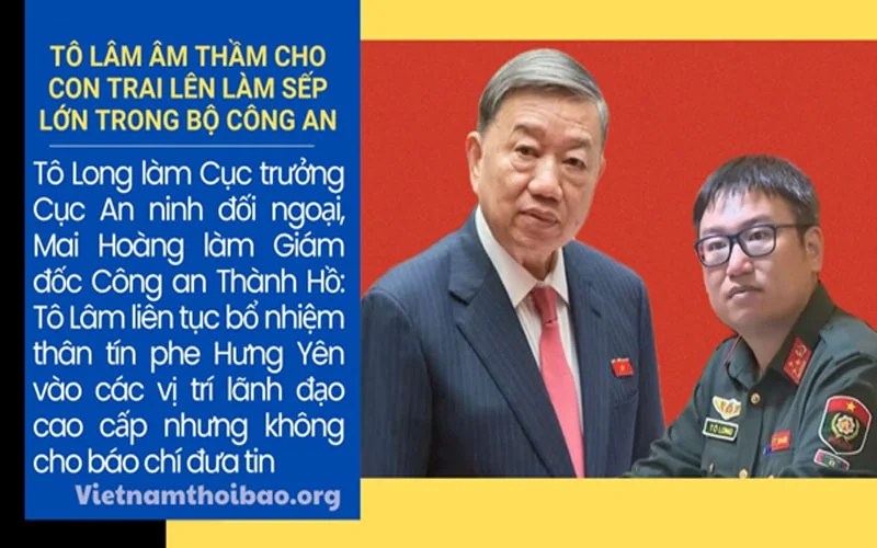 Ngày 4/6, Tô Long, con trai của Tổng Bí thư CSVN Tô Lâm chính thức nhận chức Cục trưởng Cục An ninh đối ngoại thuộc Bộ Công an. Thông thường những tin nhận chức ở cấp cục trưởng này sẽ được báo chí CSVN đăng tin rầm rộ. Thế nhưng với Tô Long thì không thấy tờ báo nhà nước nào đưa tin. Điều này cũng khiến dư luận hoài nghi không biết Tô Long có thật sự lên chức hay không!