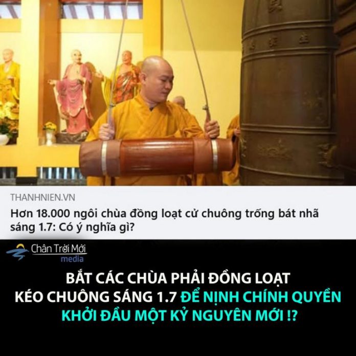 Ra lệnh bắt các chùa phải đồng loạt kéo chuông sáng 1.7 để nịnh chính quyền khởi đầu một kỷ nguyên mới, đó không phải phật phải chùa phải sư phải giáo hội, mà chỉ như cái hợp tác xã tu hành nặng mùi trần tục, thực dụng.
