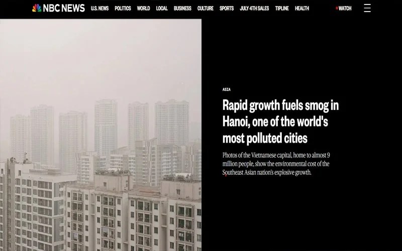 Một ghi nhận được đăng tải trên NBC News vào ngày 29/6/2025. Theo bài báo, tình trạng ô nhiễm không khí ở Hà Nội vẫn ở mức cao.