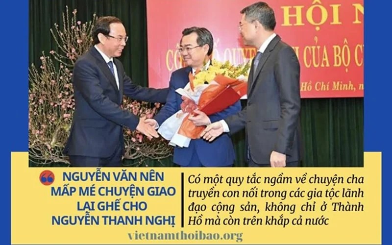 Thậm chí, năm 2015, bà Nguyễn Thị Quyết Tâm (lúc đó là Phó Bí thư Thành ủy TP.HCM) từng hùng hồn phát biểu rằng: “Con lãnh đạo làm lãnh đạo là hạnh phúc của dân tộc”. Điều này cho thấy một quy tắc ngầm về chuyện cha truyền con nối trong giới lãnh đạo cộng sản, không chỉ ở Thành Hồ mà còn trên khắp cả nước.