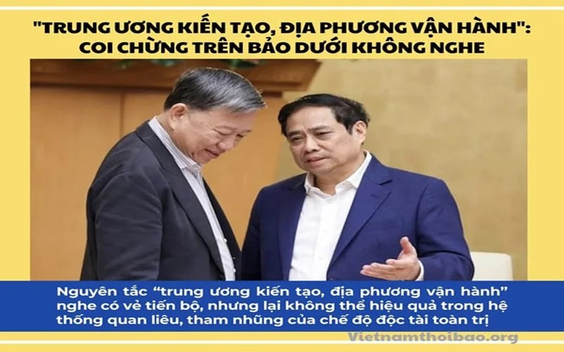 Bởi vậy, nguyên tắc “trung ương kiến tạo, địa phương vận hành” nghe có vẻ tiến bộ, nhưng lại không thể hiệu quả trong hệ thống quan liêu, tham nhũng của chế độ độc tài toàn trị. Thậm chí, với tình trạng thiếu minh bạch, kém dân chủ và trì trệ như hiện nay, thì chẳng những không tạo ra sự phát triển mà còn gây ra khủng hoảng và bất ổn.