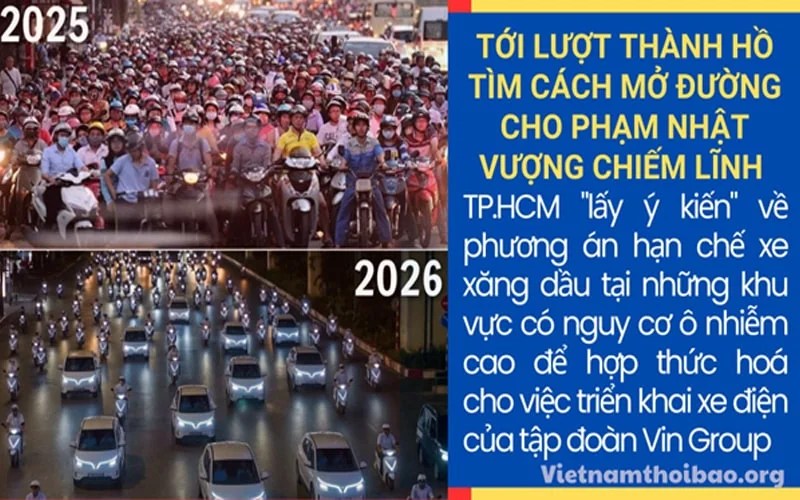Sau khi Thủ tướng Chính phủ có chỉ thị yêu cầu Hà Nội lên kế hoạch cấm xe sử dụng nhiên liệu hóa thạch ở khu vực nội đô, TP.HCM cũng nhanh chóng đưa ra đề xuất tương tự. Theo đó, thành phố lớn nhất Việt Nam sẽ tổ chức “lấy ý kiến” về phương án hạn chế xe xăng dầu tại những khu vực có nguy cơ ô nhiễm cao. Tuy nhiên, việc “lấy ý kiến” một cách bất minh này lại càng khiến dư luận bức xúc hơn, khi thấy rõ đây chỉ là cách hợp thức hoá cho việc triển khai xe điện của tập đoàn Vingroup tại TPHCM.