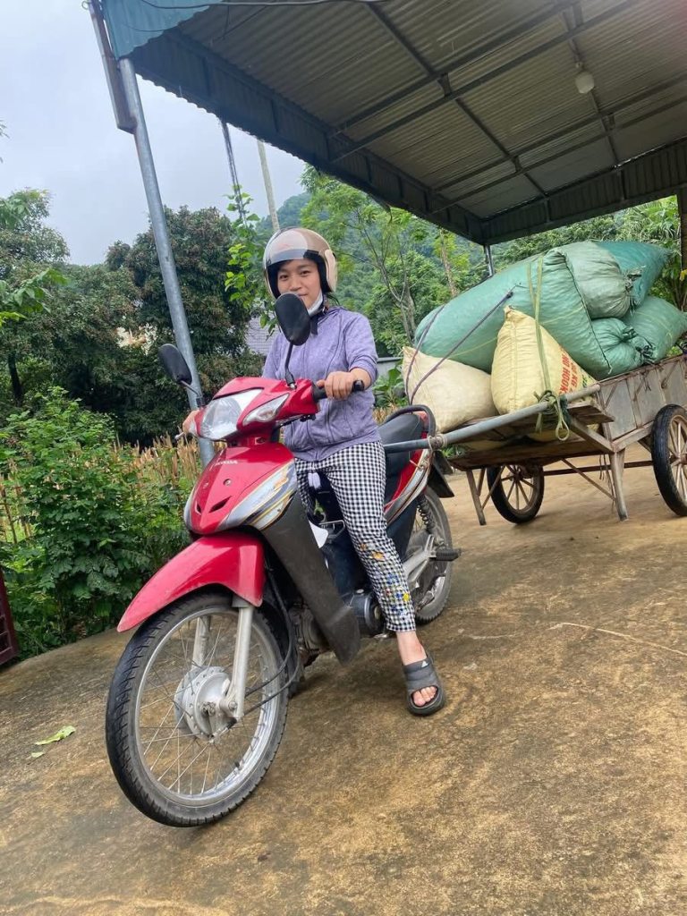 2. Cháu Thu chở cả xe lạc về ép dầu