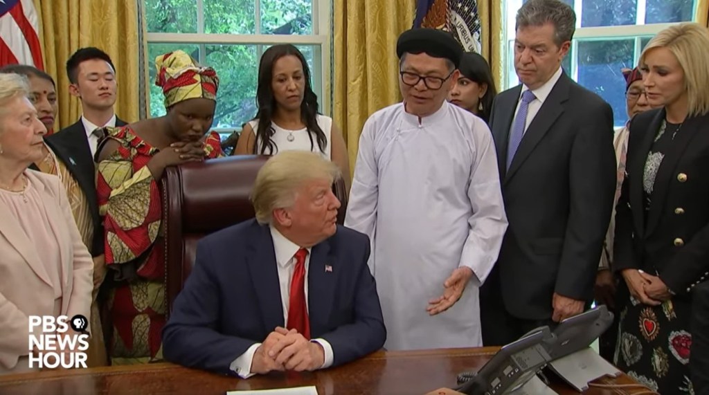 Nhiều tổ chức thuộc “Bàn Tròn Tự Do Tôn Giáo Quốc Tế” từng ủng hộ ứng cử viên Donald Trump trong cuộc tranh cử Tổng Thống vừa qua vì trong nhiệm kỳ đầu Tổng Thống Trump thể hiện quyết tâm bảo vệ tự do tôn giáo toàn cầu. Bức thư chỉ ra rằng phần lớn người tị nạn trên thế giới là nạn nhân của sự bách hại vì lý do tôn giáo. Riêng ở Thái Lan tỉ lệ này có thể lên đến 95%.