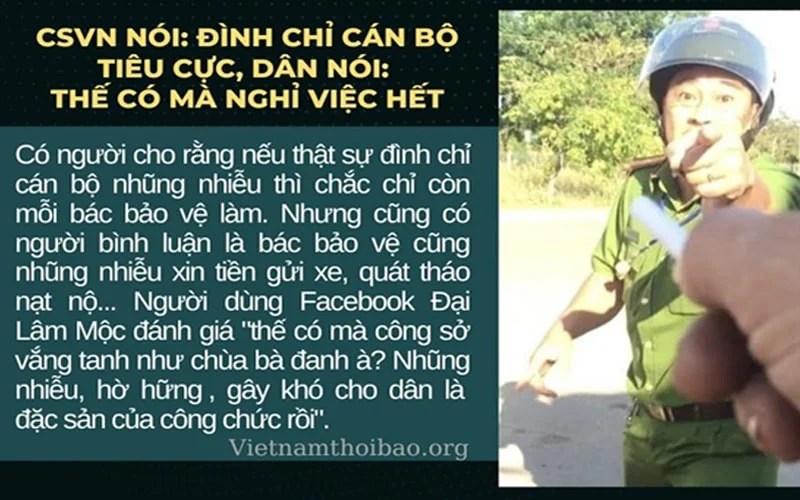 “Nếu như người công chức vi phạm trở lại vị trí cũ, thì có tìm người tố cáo để “ghim”, sau đó sẽ có những hành vi “phạt nguội” hay không? Có thể, sẽ có quy định giấu danh tính người tố cáo nhưng liệu với quen biết của anh, anh có cách tìm ra hay không? Rồi sau đó anh có làm khó làm dễ người tố cáo hay gia đình họ hay không? Điều đó là hoàn toàn không ai biết được. Vì sao? Vì nếu anh đàng hoàng, tuân thủ đúng theo quy định của pháp luật cũng như tiêu chuẩn chung về đạo đức, lối sống, kỷ luật của người công chức thì anh đã không bị tạm đình chỉ. Tạm đình chỉ, dù lớn hay nhỏ, anh vẫn là người có vấn đề”, một độc giả giấu tên chia sẻ.
