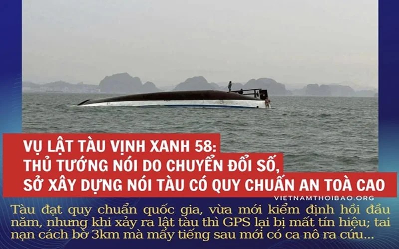 Thủ tướng Phạm Minh Chính vừa có phiên họp Ban Chỉ đạo của Chính phủ về phát triển Khoa học công nghệ, đổi mới sáng tạo, chuyển đổi số, và Đề án 06 (Ban Chỉ đạo). Tại đây ông Chính có lấy ví dụ về vụ lật tàu Vịnh Xanh 58 trên Vịnh Hạ Long ngày 19/7.