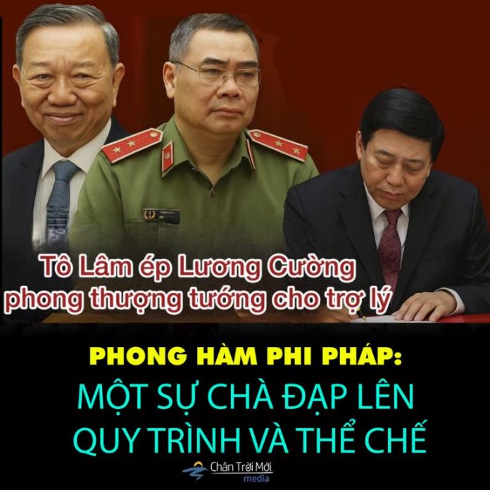 Việc phong hàm Thượng tướng trong tình huống này không chỉ là sai quy trình mà còn xé bỏ tính ràng buộc pháp lý vốn là trụ cột trong tổ chức hành chính nhà nước. Một nhà nước pháp quyền không thể chấp nhận hành vi phong tướng kiểu “ban phát ân huệ” hay “trả công làm tôi trung thành”, nếu không muốn trượt dài vào vũng lầy của chủ nghĩa sùng bái cá nhân và chế độ độc tài quân sự trá hình.