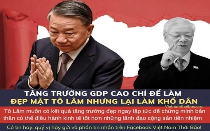 Phạm Minh Chính muốn nịnh bợ Tô Lâm, để có thể tiếp tục ngồi thêm một nhiệm kỳ nữa, hoặc không bị Tô Lâm cho vào “lò” như Nguyễn Xuân Phúc, Vương Đình Huệ, Võ Văn Thưởng. Việc giữ cho GDP luôn ở mức “đẹp”, con số 8% có nghĩa là “phát” theo tiếng Hoa), rõ ràng là để tô vẽ cho cái gọi là “kỷ nguyên vươn mình” của Tô Lâm, chứ không phải để đời sống của người dân được tốt hơn. Tổng Bí thư họ Tô muốn có kết quả tăng trưởng đẹp ngay lập tức để chứng minh bản thân có thể điều hành kinh tế tốt hơn những lãnh đạo cộng sản tiền nhiệm. Dùng số liệu đó để “phông bạt” với thiên hạ, bất chấp người dân ca thán, oán trách từng ngày, từng giờ.