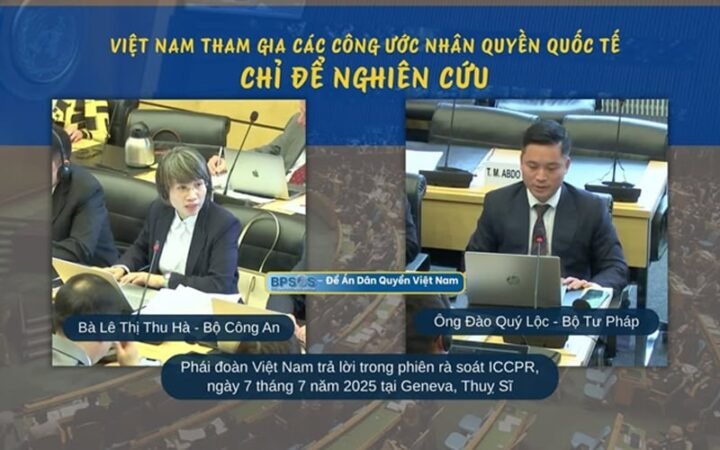 Các phiên họp rà soát về tình hình thực thi Công Ước Quốc Tế Về Các Quyền Dân Sự Và Chính Trị (International Covenant on Civil and Political Rights – ICCPR) trong khuôn khổ chu kỳ thứ tư, năm thứ 43 mà Việt Nam đã tham gia vừa diễn ra trong hai ngày 7 và 8 tháng 7 năm 2025 vừa qua tại Geneva, Thuỵ Sĩ giữa các chuyên gia nhân quyền Liên Hiệp Quốc và một số đại diện chính quyền Việt Nam. Tại đây, lần đầu tiên hai vị quan chức Việt Nam đã thẳng thắn cho các chuyên gia nhân quyền Liên Hiệp Quốc biết một sự thật trần trụi rằng: 43 năm Việt Nam tham gia chỉ để nghiên cứu chứ không phải để thực thi nhằm bảo vệ quyền thụ hưởng cho người dân!!!