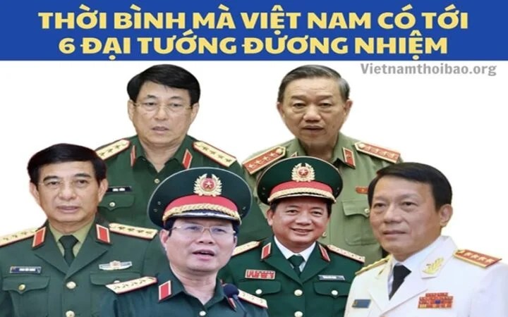 Nhìn lại lịch sử để thấy rõ ràng Việt Nam hiện nay đang bị lạm phát đại tướng, giữa thời bình. Hoàn toàn không có sỹ quan quân đội hay công an nào có công trạng, chiến tích gì xứng tầm để mang lon đại tướng hết. Thậm chí cho tới khi 6 quan chức trên được phong đại tướng thì người dân cũng không biết họ là ai. Bây giờ hỏi tới Tô Lâm, Lương Cường, Phan Văn Giang thì một số người còn biết qua các chức vụ của họ; chứ Nguyễn Tân Cương, Trịnh Văn Quyết là ai, thì không mấy ai biết tới.