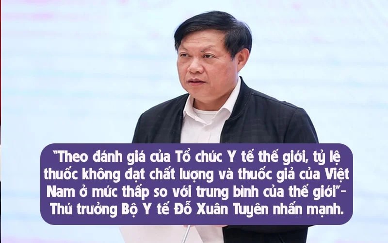 “Theo đánh giá của Tổ chức Y tế thế giới, tỷ lệ thuốc không đạt chất lượng và thuốc giả của Việt Nam ở mức thấp so với trung bình của thế giới”– Thứ trưởng Bộ Y tế Đỗ Xuân Tuyên nhấn mạnh.