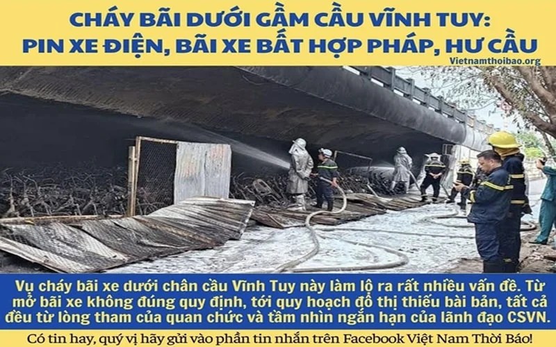Vụ cháy bãi xe dưới chân cầu Vĩnh Tuy này làm lộ ra rất nhiều vấn đề. Từ mở bãi xe không đúng quy định, tới quy hoạch đô thị thiếu bài bản, tất cả đều từ lòng tham của quan chức và tầm nhìn ngắn hạn của lãnh đạo CSVN.