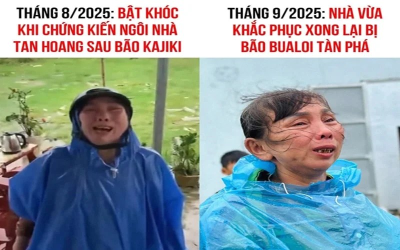 Rồi giờ đây là cơn bão số 10, những hình ảnh, video trên mạng xã hội đã cho thấy sức tàn phá khủng khiếp của cơn bão này. Như trong hình là cảnh bà Võ Thị Tình, một người phụ nữ ở Hà Tĩnh, khóc nghẹn vì nhà vừa sửa xong sau bão số 5, giờ lại bị cuốn phăng toàn bộ bởi bão số 10. Từ cuối tháng 8 tới nay, tức mới chỉ trong vòng trên dưới một tháng thôi, vẫn là hình ảnh đó, tiếng khóc đó, nhưng càng thảm thương, đau lòng hơn. Bởi tháng trước đã đổ hết tiền để sửa nhà, tháng này lấy gì để sửa tiếp đây, rồi tháng sau, năm sau vẫn có bão tiếp mà!