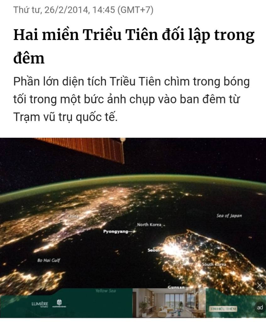 Triều Tiên được coi là quốc gia bí ẩn nhất thế giới. Người dân Triều Tiên, phần lớn là nông dân, sống ra sao vẫn được coi là bí mật quốc gia. Giao thương hàng hóa chủ yếu với Trung Quốc, giờ có thêm vụ bán đạn pháo và lính đánh thuê cho Nga. Ảnh chụp bán đảo Triều Tiên từ vũ trụ vào ban đêm do báo Vnexpress đăng ngày 26.2.2014 cho thấy nửa phía Bắc tối thui, trong khi nửa phía Nam sáng rực ánh điện. Có lần tôi đọc được bài viết của một ông nghe nói từng làm cán bộ to ở Đại sứ quán Việt Nam tại Triều Tiên, với tinh thần “ăn cây nào rào cây đó”, đã bác bỏ những thông tin cho rằng Triều Tiên nghèo đói. Đã thế ông còn ca ngợi nhiều mặt ở Triều Tiên khi so với Việt Nam và cho rằng Việt Nam phải học dài! Còn trong tự truyện “Lê Vân yêu và sống”, khi kể về thời kì theo chồng sống ở Triều Tiên, sau khi than thở không có thang máy, không có điện ở khách sạn, chị chỉ nói ngắn gọn: “Nhờ sống ở Triều Tiên mà tôi mới biết quý trọng những gì mình đang được hưởng ở Việt Nam”.