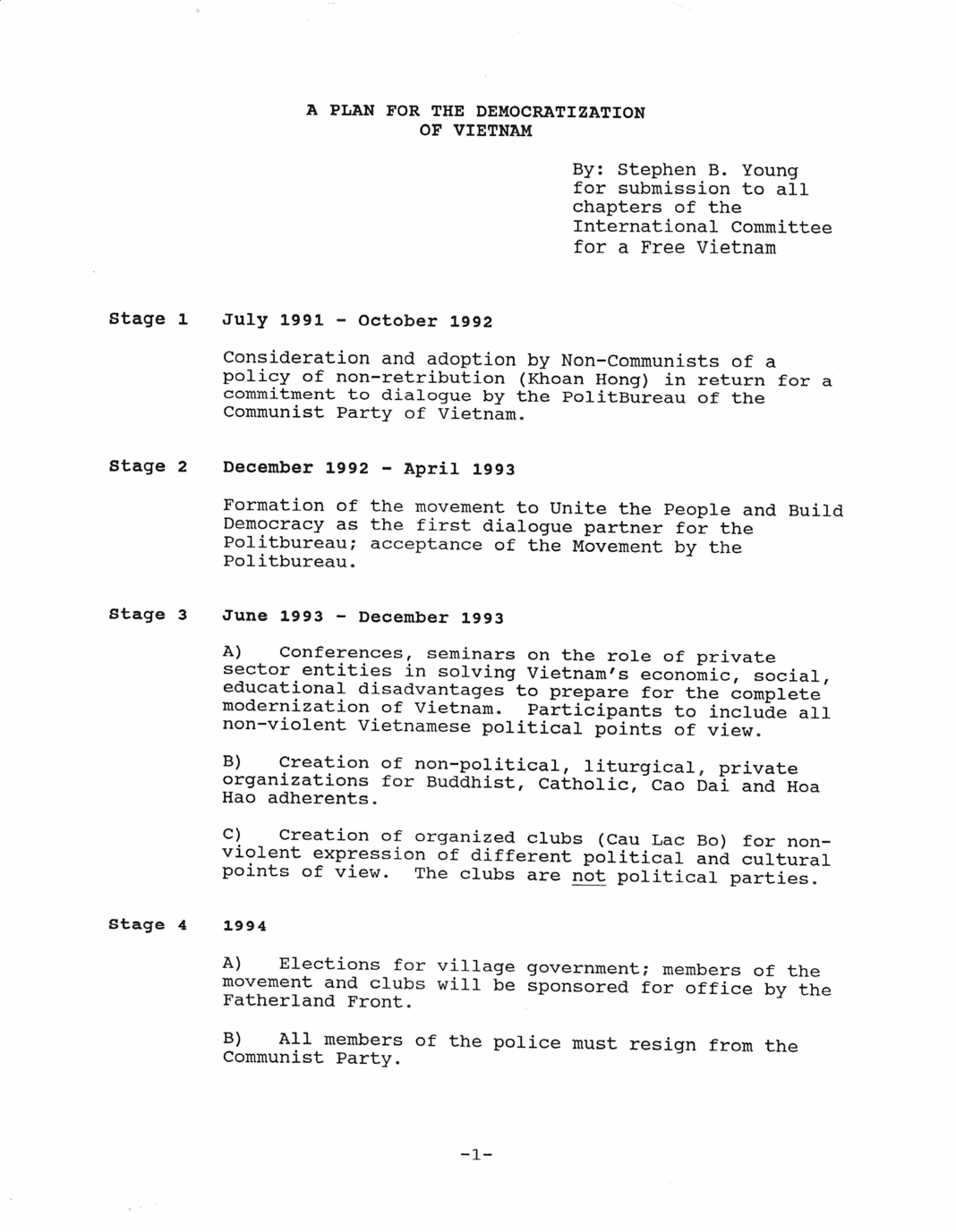 MỘT KẾ HOẠCH DÂN CHỦ HÓA CHO VIỆT NAM