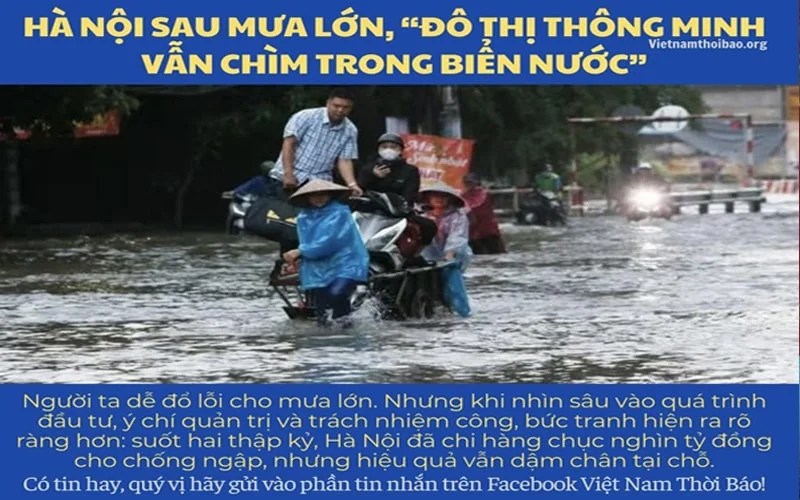 Bởi khi một thành phố không thể tự thoát khỏi nước mưa, thì “thành phố thông minh” chỉ là khẩu hiệu treo cao. Và khi không ai chịu trách nhiệm cho những con phố biến thành sông, thì cái ngập lớn nhất của Hà Nội không phải là nước, mà là niềm tin của người dân.