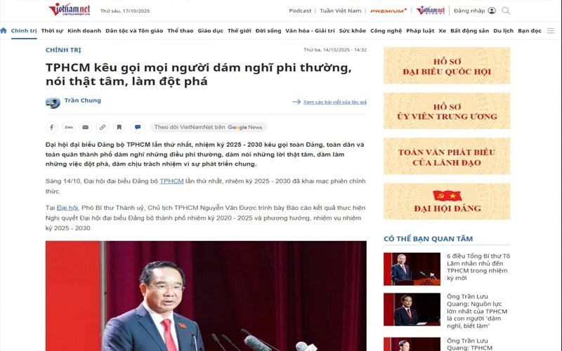 Tại đại hội đại biểu Đảng bộ Thành phố Hồ Chí Minh (TPHCM) lần thứ nhất, nhiệm kỳ 2025 – 2030 với khẩu hiệu hành động “Đoàn kết – Dân chủ – Kỷ cương – Đột phá – Sáng tạo”, kêu gọi toàn Đảng, toàn dân và toàn quân thành phố dám nghĩ những điều phi thường, dám nói những lời thật tâm, dám làm những việc đột phá, dám chịu trách nhiệm vì sự phát triển chung; nỗ lực phấn đấu hoàn thành thắng lợi các mục tiêu, nhiệm vụ đã đề ra.