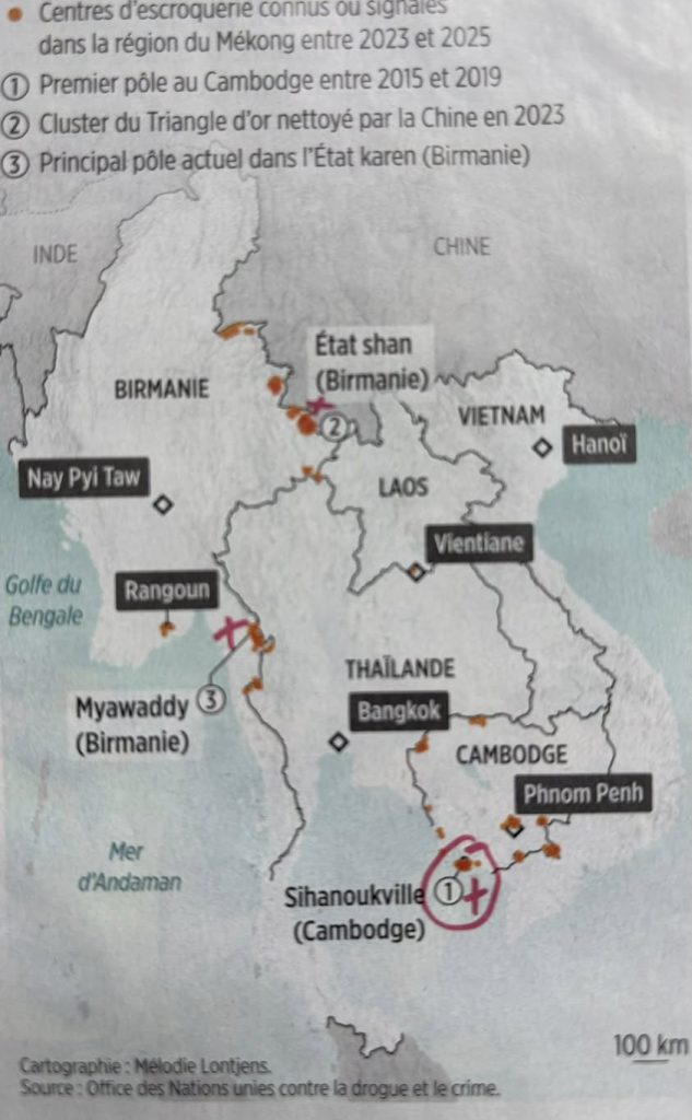 Kèm theo bài viết này, tôi có bản đồ các « nhà máy » lừa đảo ở Đông Nam Á.