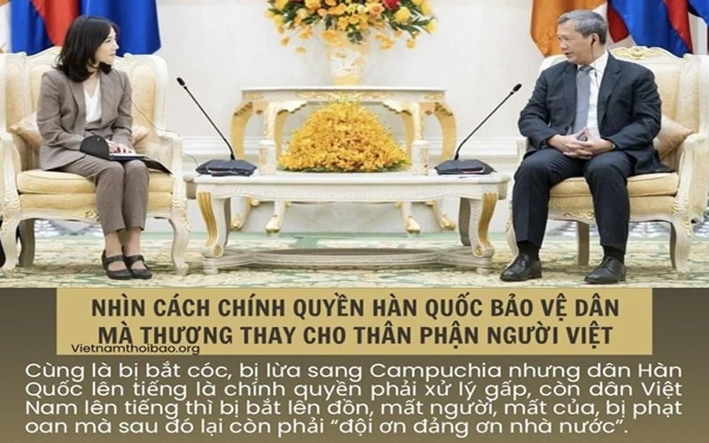Hàn Quốc phản ứng như vậy mà bị coi là chậm, trong khi cộng sản Việt Nam thậm chí còn không có phản ứng gì, ngoài những lời nói gió bay, tỏ ra quan ngại của các quan chức lãnh đạo để cho dân nghe. Hàn Quốc thống kê có khoảng 1.000 công dân nước này trong số hơn 200.000 người đang làm việc do bị uy hiếp bằng bạo lực tại những tụ điểm lừa đảo ở Campuchia. Nhưng Việt Nam thậm chí còn không có thống kê, dù ai cũng biết là con số phải lên tới vài chục ngàn nạn nhân người Việt ở Campuchia. Dân Hàn Quốc lên tiếng là chính quyền phải xử lý gấp, còn dân Việt Nam lên tiếng thì bị bắt lên đồn, mất mạng, mất tiền, bị án oan mà lại còn phải “mang ơn đảng ơn bác”.