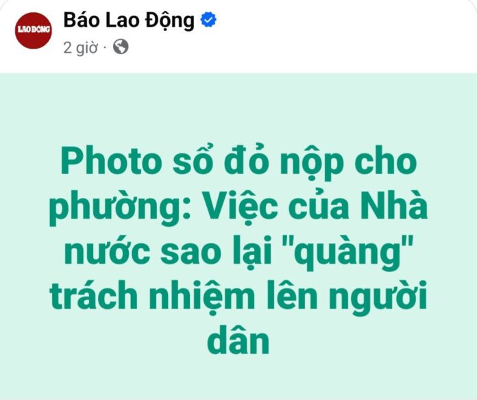 Mấy hôm nay câu chuyện Hà Nội bắt người dân phải tự photo sổ đỏ nộp cho phường đã trở thành một sự ồn ào trong dư luận, báo chí và giới luật sư cũng lên tiếng khẳng định rằng cách làm này trái pháp luật và đi ngược lại với tinh thần cải cách hành chính: Trách nhiệm của nhà nước nhưng lại quàng lên cổ dân.