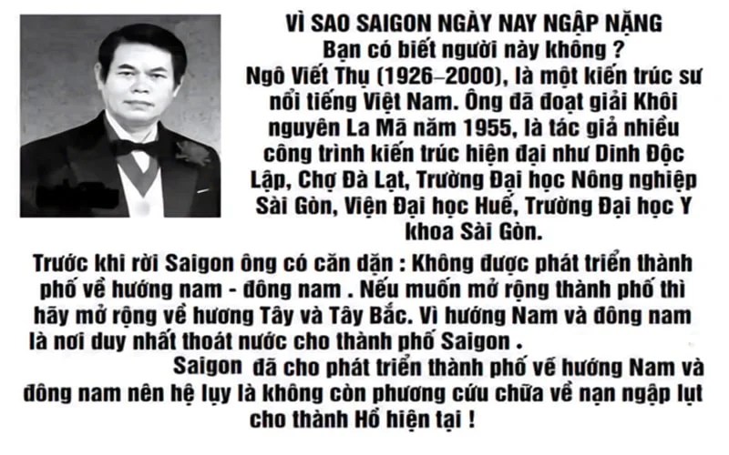 Thế mà sau 1975, trong cái hào khí của công cuộc “cải tạo xã hội chủ nghĩa” và “xóa bỏ tàn dư chế độ cũ”, nhiều tuyến kênh lạch bị san lấp một cách tàn nhẫn, để xây dựng nhà cửa, khu dân cư, đường sá. Kết quả: nước không còn lối thoát, và thành phố bắt đầu chìm trong chính sự cao ngạo và thiển cận của một đàn ngáo rừng.