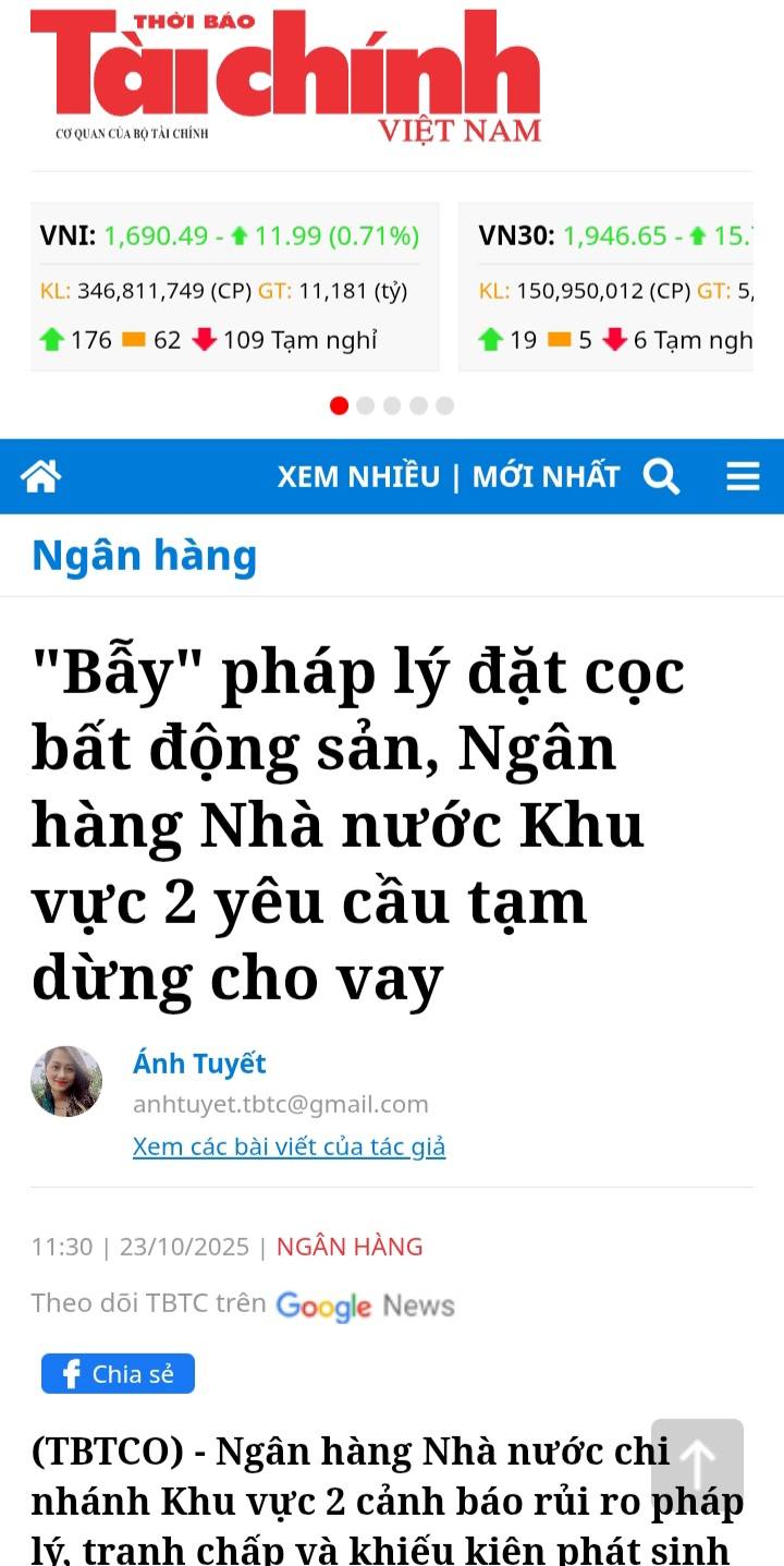 Bản án của Tòa Khu vực 7, tuy chưa có hiệu lực (vì ngân hàng V. kháng cáo). Nhưng chi nhánh Ngân hàng Nhà nước Khu vực 2 đã “lạnh xương sống”, phải ra Văn bản số 5553/KV2-TTRA gửi các ngân hàng thương mại tạm ngưng “cho vay đặt cọc bất động sản ‘’hình thành trong tương lai”, vì đến “thiên thu” chúng cũng chưa xây xong phần móng.