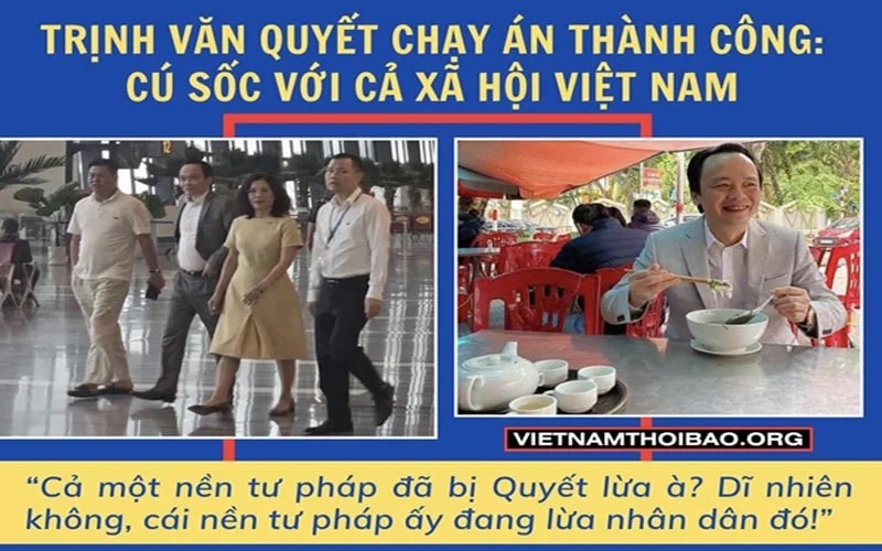 Theo hồ sơ do CSVN công bố, chủ tịch tập đoàn FLC, Trịnh Văn Quyết bị khởi tố, bắt giam ngày 29/3/2022, với cáo buộc phạm tội “thao túng” và “che giấu thông tin chứng khoán”. Toà sơ thẩm tuyên ông Trịnh Văn Quyết 21 năm tù, bao gồm 18 năm tù về tội “lừa đảo chiếm đoạt tài sản” và 3 năm tù về tội “Thao túng thị trường chứng khoán”. Nhưng toà phúc thẩm tuyên Trịnh Văn Quyết chỉ cần chấp hành 7 năm tù và nộp phạt 4 tỷ đồng. Từ lúc này, dư luận đã đặt nghi vấn về việc Trịnh Văn Quyết chạy án thành công nên mới được “giảm sâu” như vậy. Nhưng tới hôm nay, ông Quyết được tự do chỉ sau hơn 3,5 năm bị bắt giam. Tức chỉ 16% thời hạn so với bản án sơ thẩm, và 50% so với bản án phúc thẩm.