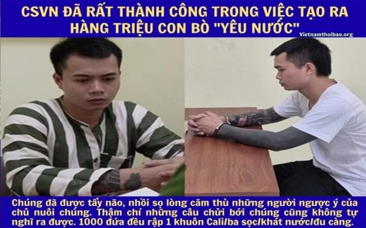 Nhưng chính quyền này đã rất thành công trong việc tạo ra hàng triệu con bò như vậy. Chúng đã được tẩy não, nhồi sọ lòng căm thù những người ngược ý của chủ nuôi chúng. Thậm chí những câu chửi bới chúng cũng không tự nghĩ ra được. 1000 đứa đều rập 1 khuôn Cali/ba sọc/khát nước/đu càng. Nhiều đứa chửi Mỹ như kẻ thù nhưng thậm chí Mỹ nằm ở châu nào, nói tiếng gì nó còn không biết. Nhưng cái hệ thống nhào nặn ra chúng đã biến chúng thành những con robot được lập trình sẵn, hễ gặp “phản động” là auto chửi. Lời lẽ của chúng khốn nạn, độc ác và cay nghiệt như dành cho kẻ thù.