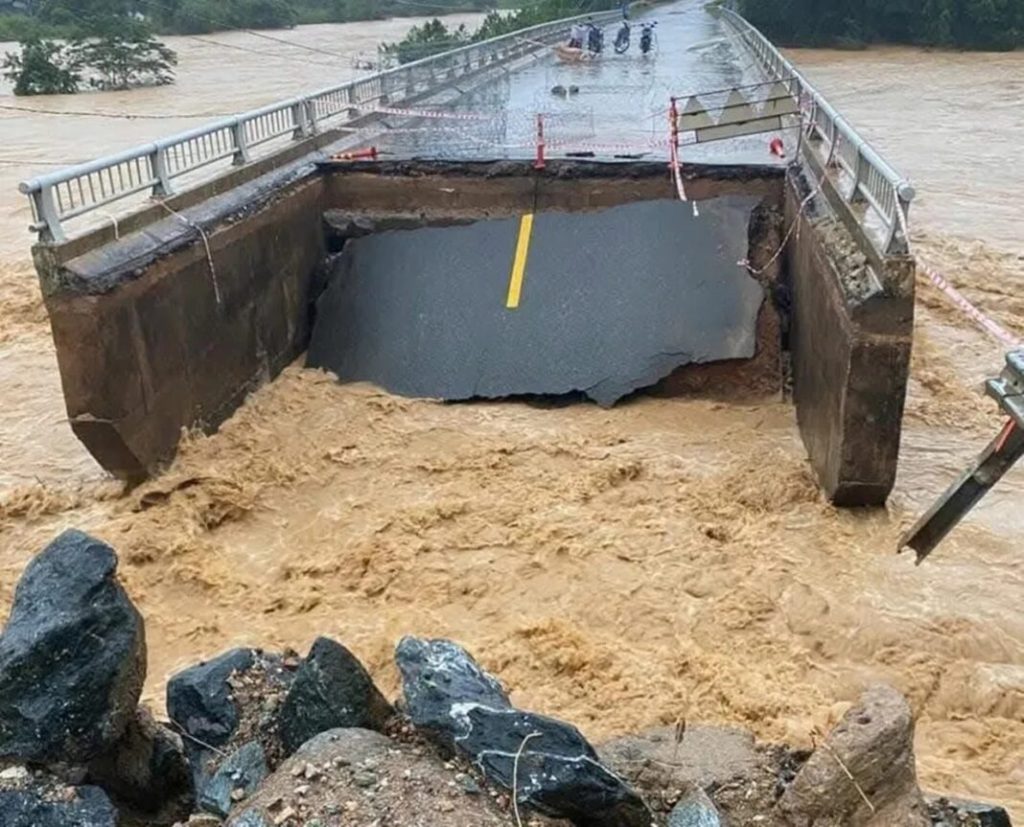 Trong khi đó, nước lũ trên sông Trường dâng cao, xói lở làm đứt hoàn toàn mố cầu Ca Da trên quốc lộ 24C, xã Trà Tân, khiến giao thông trên tuyến huyết mạch nối Đà Nẵng-Quảng Ngãi bị chia cắt.