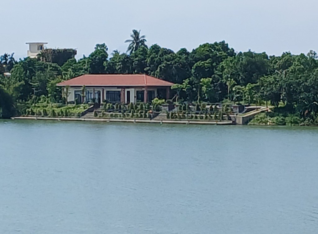 Hôm đi Huế hồi tháng 8, đứng trên chùa Thiên Mụ nhìn qua bên bờ kia sông Hương, thấy một khu nhà khá mới (hình 2), không biết xây khi nào, nhô ra ngoài sông. Lúc đó tôi tự hỏi, đây là nhà công vụ hay nhà của ai, sao lại xây nhà ở vị trí đó, có đúng với quy định về hành lang sông suối không, rồi mưa lũ thì nước chảy thế nào, ai đã cấp phép cho một công trình như thế, v.v..