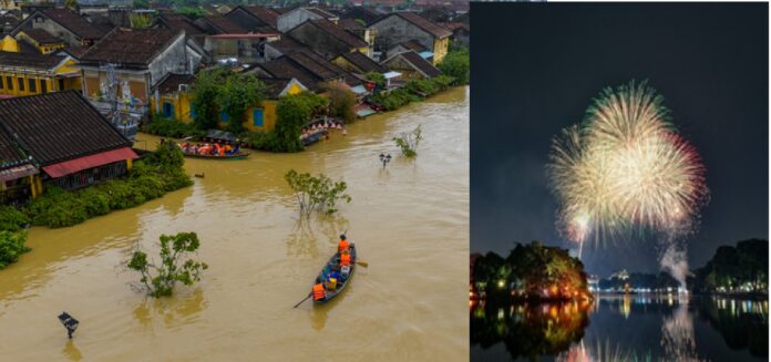 Vậy mà, hôm 29, UBND TP Hà Nội ký ban hành về việc tổ chức bắn pháo hoa tầm cao kết hợp tầm thấp, dựa trên đề nghị của Sở Văn hóa và Thể thao hôm “người dân oằn mình với lũ”.