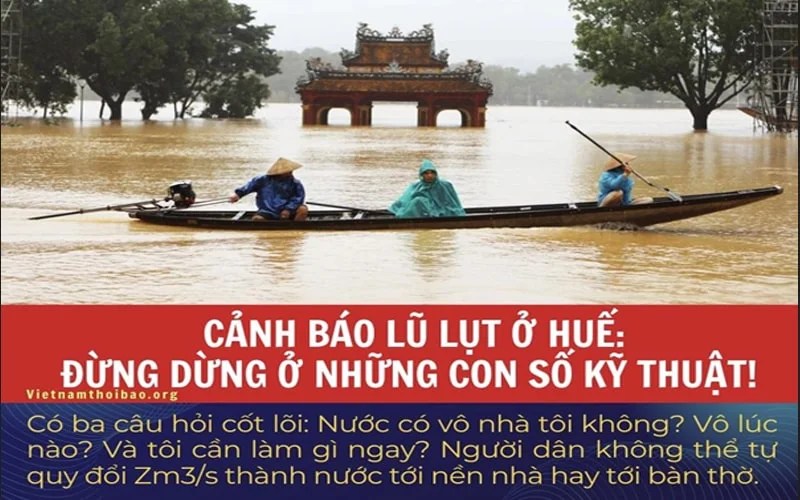 Bản tin lũ lụt tại Huế thường sử dụng ngôn ngữ kỹ thuật chuẩn: “Mực nước sông Hương tại trạm Kim Long đạt Xm, trên báo động III Ym”; “Lưu lượng xả của hồ Tả Trạch là Zm3/s”. Về chuyên môn, các con số này hoàn toàn đúng và cần thiết cho cấp quản lý.