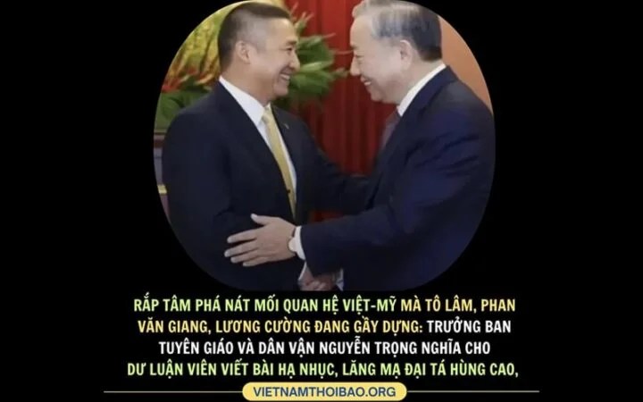 Trưởng Ban Tuyên giáo và Dân vận Nguyễn Trọng Nghĩa cho dư luận viên viết bài hạ nhục, lăng mạ Đại tá Hùng Cao, nhằm phá nát mối quan hệ Việt-Mỹ mà Tô Lâm, Phan Văn Giang, Lương Cường đang gầy dựng.