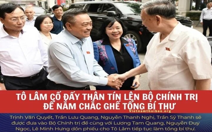 Trịnh Văn Quyết, Trần Lưu Quang, Nguyễn Thanh Nghị, Trần Sỹ Thanh sẽ được đưa vào Bộ Chính trị để cùng với Lương Tam Quang, Nguyễn Duy Ngọc, Lê Minh Hưng dồn phiếu cho Tô Lâm tiếp tục làm tổng bí thư.