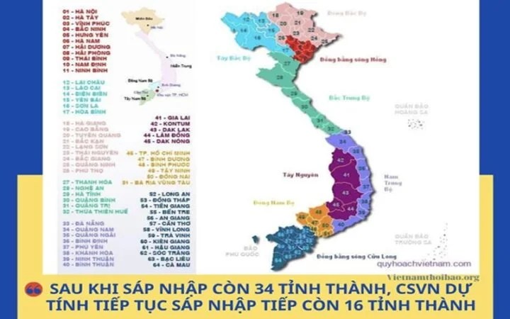 Sau khi sáp nhập còn 34 tỉnh thành, CSVN dự tính tiếp tục sáp nhập tiếp còn 16 tỉnh thành